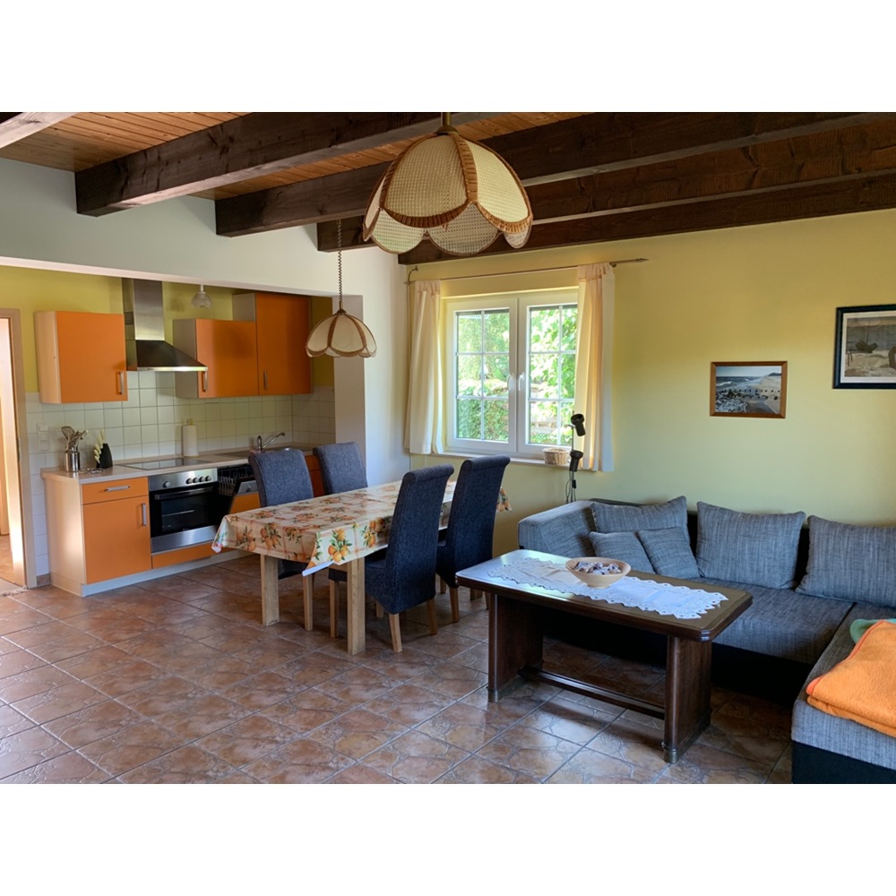 Haus Archenholdweg 3/4 - Doppelhaushälften In den ca. 85?m² großen Doppelhaushälften finden bis zu vier Personen ausreichend Platz für einen komfortablen Aufenthalt. Im Erdgeschoss befinden sich ein modernes Badezimmer, das gemütliche Wohnzimmer mit integrierter, voll ausgestatteter Küche (inkl. Tiefkühlfach, Geschirrspüler, Mikrowelle, Backofen etc.) sowie ein Abstellraum. Im Obergeschoss stehen zwei separate Schlafzimmer und ein zusätzliches Gäste-WC zur Verfügung. Außenrollos sorgen im gesamten Haus für angenehme Lichtverhältnisse und Privatsphäre. Bettwäsche und Handtücher sind im Preis inbegriffen. Waschmaschine und Trockner können gegen Gebühr genutzt werden. Jede Haushälfte verfügt über eine eigene Terrasse mit Grillmöglichkeit sowie über einen Pkw-Stellplatz direkt am Haus.